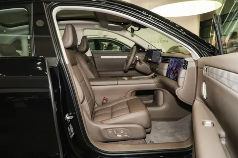 再说说这两块屏幕:主驾是 27.1 英寸的 5K Mini LED 驾舱屏,分辨率真的绝了,导航的时候地图上的小字清清楚楚,就算开 2 小时车,眼睛也不酸;副驾是 15.6 英寸的 3K Mini LED 娱乐屏,我家娃坐上去就挪不开眼,试驾的时候放了一集《汪汪队》,屏幕色彩比家里的 4K 电视还鲜艳,声音是 21 鎏金天籁扬声器的,7.1.4 独立声道,娃说 “比幼儿园的电视还好看”。老婆也开心,说以后带娃出门再也不用 “抱在怀里哄”,副驾放动画就能搞定。