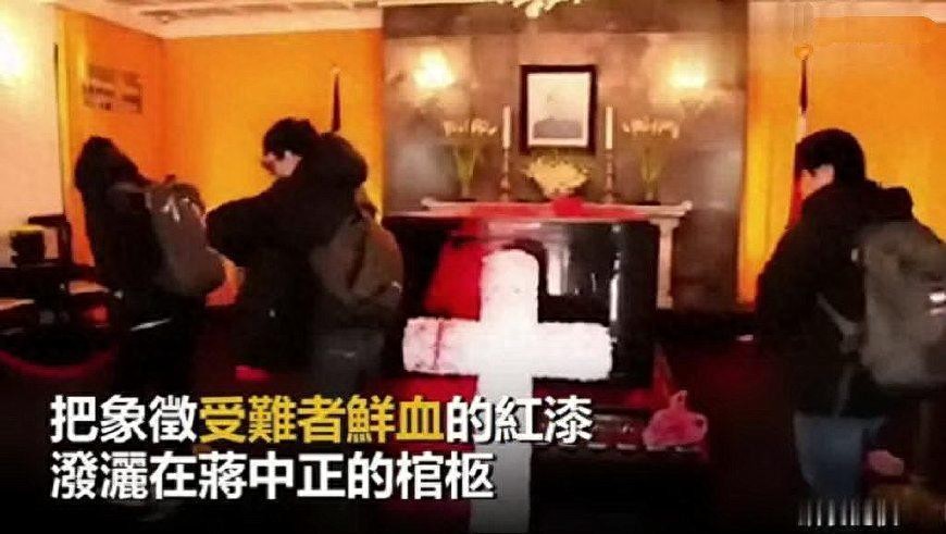 油漆桶哐当一声落地,蒋介石灵柩上的红漆缓缓流淌,这一画面不仅是对逝者的不敬,更折射出台湾社会至今难以愈合的裂痕。