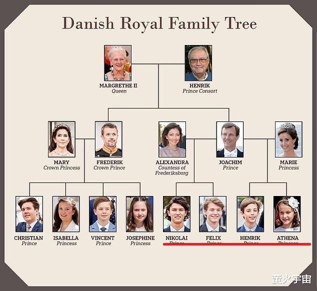 玛格丽特二世和已故的丈夫亨里克亲王,只有两个儿子,大儿子弗雷德里克早已经被册立为王储,其和玛丽王妃(为了和约阿希姆的妻子区分,也被称为大玛丽)一共有四个孩子,长子克里斯蒂安是未来的丹麦国王,据悉也只有他可以享受到王室津贴,亲弟弟亲妹妹虽然头衔稳固,却没有津贴,成年后也是需要自食其力的。