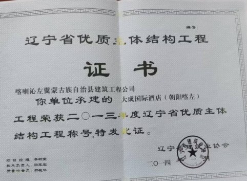 辽宁喀左县李先生向媒体爆料反映,喀左县大成国际酒店未经验收投入使用八年之久,存在安全隐患问题。(辽宁省世纪杯工程证书)承