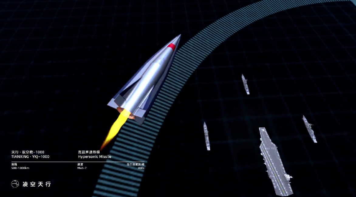 然而,驭空戟-1000高超音速导弹海打击的重点目标,在视频中可谓一览无余,不仅能高速攻击陆上的高价值目标,而且还能打击移动的海上航母战斗群,可见其对航母等主战舰艇具有极大的威慑。