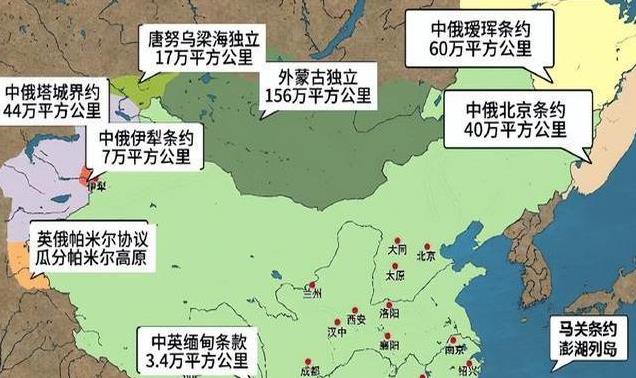 外东北、外西北,这些曾经属于我们的地方,现在在地图上却变成了不同的颜色。