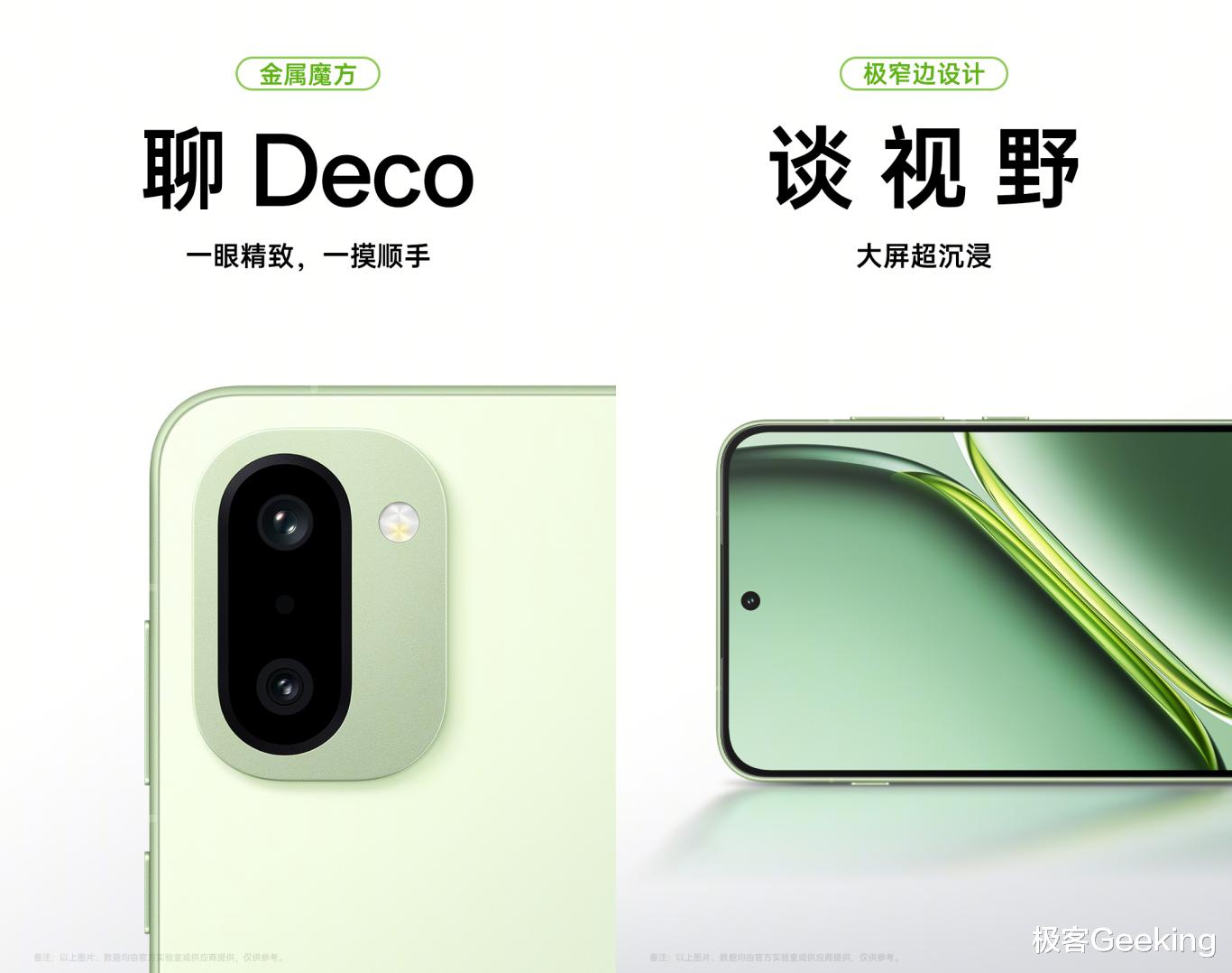 整体来看Ace 6T 的外观设计延续 10 月份发布的Ace 6,依然是微弧边直屏 + 极窄边框 + 小巧圆润矩形后摄 Deco 的设计风格。