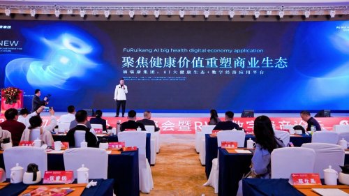 作为本次峰会协办单位及重点展示企业,福瑞康集团在路演环节精彩亮相。集团教育部部长袁梓豪先生上台介绍,福瑞康作为新兴AI大健康数智化生态产业集群平台,以“为人民健康服务”为使命,构建了“智能穿戴设备为核心入口、健康数据为战略资产、全生命周期健康管理为终极目标”的三位一体业务模型,形成“数据采集-分析-管理-服务”的完整闭环。