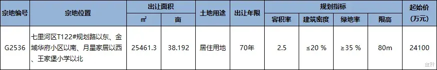 挂牌起始价:24100万元;挂牌起止时间:2025年12月14日-12月24日,宗地详情如下: