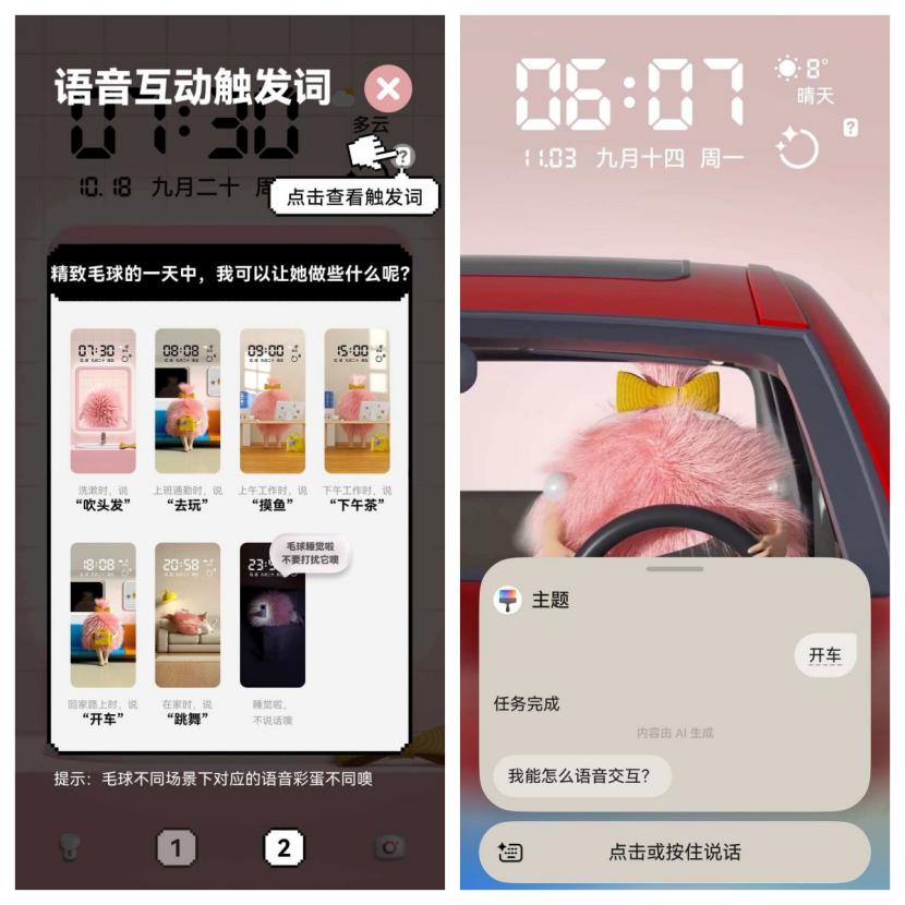 还有一个隐藏的“碰一碰”功能,我拿我的手机和其他也用了这个主题的手机轻轻一碰,两个设备上的毛球会一起欢呼雀跃,好像在庆祝什么,太有趣了!