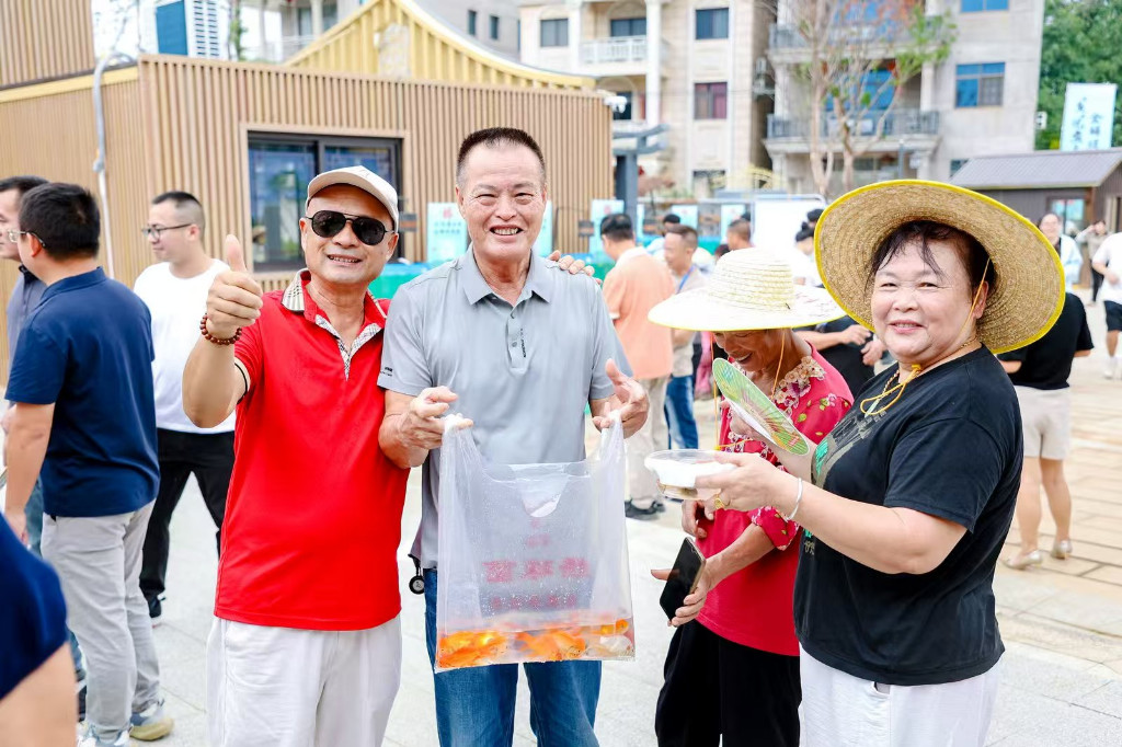 活动现场亮点纷呈。舞蹈表演融入金鱼与丰收元素,点燃全场氛围;金鱼专家、养殖户、企业代表轮番发言,分享产业发展故事;授牌环节表彰乡村振兴先进单位与个人,树立产业发展标杆;“福鱼手印”启动仪式更是将活动推向高潮,象征着闽侯金鱼产业与乡村振兴事业携手共进。此外,养殖知识讲座、有奖问答互动游戏与养殖示范点参观等环节,让嘉宾与群众深度参与,沉浸式感受闽侯金鱼文化魅力与产业实力。