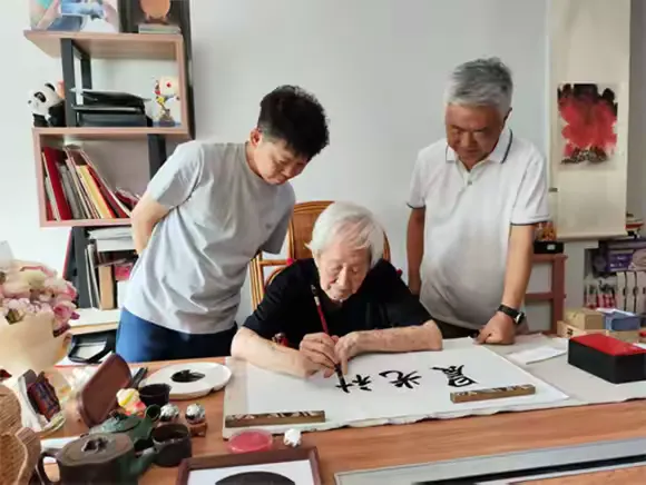 2025 年 9 月 10 日正好是教师节,笔者与画家王四海、原中国日报摄影记者郭建设、原北京晚报总编室高级编辑窦清风、中华环保联合会生态文化工作委员会副主任委员罗敏等来到敬老院看望百岁老人漫画家李滨声。他的屋里茶香四溢,书柜上摆满了各地友人送的“小玩具”温馨和谐,当阳光轻柔地洒在窗前时,老人脸上绽放出温暖的笑容,老友见面是那么的亲切好像有太多故事要 说。