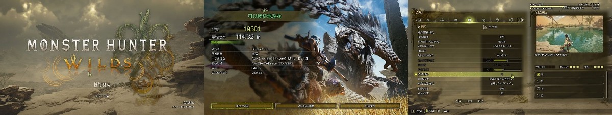 荒野benchmark部分,相比RE4,怪物猎人荒野在游戏中加入了DLSS和帧生成的支持,游戏流畅度直接翻倍;在“极高”预设+DLSS质量+帧生成+光追高的场景下,测试程序跑出了19501总分,平均114.32帧,作为2024年3A整体表现相当亮眼,搭配4K 165hz显示器游玩会非常爽。