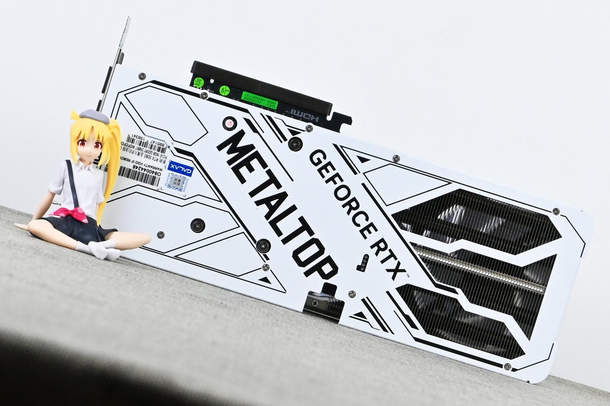 和之前测试的金属大师系列一样,影驰RTX5080金属大师白金版OC(下文简称“RTX5080金属大师OC”)包装上采用白色主题+巨大MT字样LOGO,即为METAL TOP金属大师的缩写;在RTX50这一代里,影驰金属大师分为黑金和白金两个版本,除了配色风格外内部设计完全相同,玩家可以配合其他配件达成纯白/纯黑装机风格;从包装信息可以看到,RTX5080金属大师OC支持三年质保和个人送修服务。