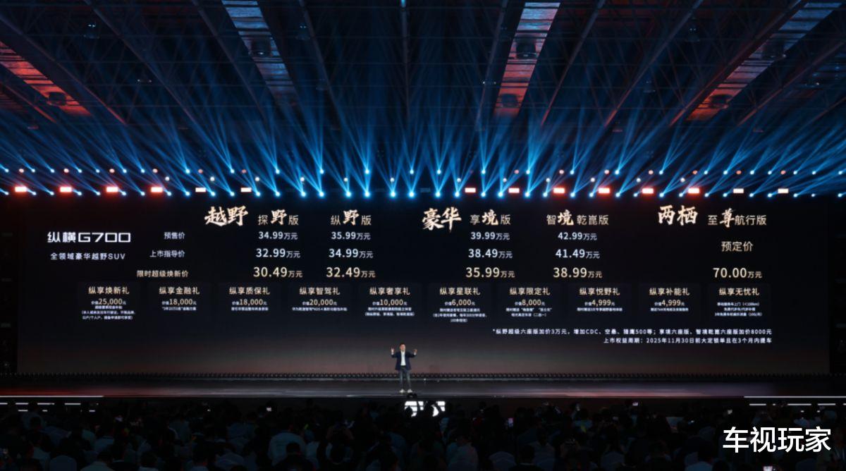 2025年10月19日,中国芜湖宜居国际博览中心迎来“至前所未至——纵横G700全球上市发布会”。作为纵横品牌首款量产车型,这款定位“全领域豪华越野SUV”的新车,不仅以32.99万元-41.49万元的官方指导价、30.49万元起的限时超级焕新价切入市场,更携十大专属购车权益与“极致冗余技术”,另有至尊航行版以70万元预定价开启定制通道。打破国际品牌对豪华越野市场的长期垄断,为中国汽车工业“从追赶到领先”写下关键注脚。