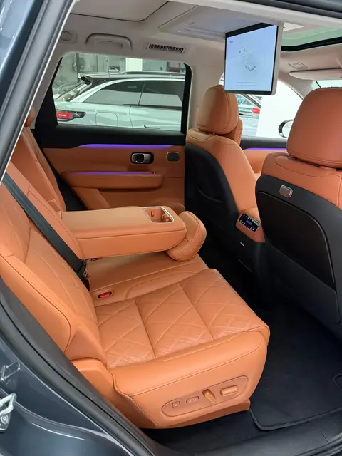 娱乐系统方面,车辆全系标配10.25英寸仪表屏和14.6英寸2.5K分辨率中控屏,高配车型还可选装15.6英寸后排吸顶屏(分辨率1080P),结合21扬声器支持的7.1.4杜比全景声音响系统,能为后排乘客带来沉浸式的影音体验。在实际试驾中,这套系统在播放高清视频时表现流畅,音效层次分明,尤其适合长途旅行中缓解疲劳。