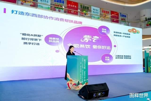 浙江天顺控股集团有限公司常务副总裁韩梦莹紧接着发布“紫云”品牌“今昭共饮,蜀你好运”系列新品——羽衣甘蓝紫云猕猴桃NFC混合果蔬汁。这款产品是昭化优质农产品与现代工艺的完美融合,它以昭化农业“金字招牌”的紫云猕猴桃为原料,搭配具有“超级食物”之称的羽衣甘蓝,采用NFC常温锁鲜技术锁住营养成分,口感清爽酸甜,既彰显了昭化农产品的卓越品质,又契合了杭州消费者对健康饮品的需求,发布后迅速成为现场焦点,不少市民当场咨询购买渠道。