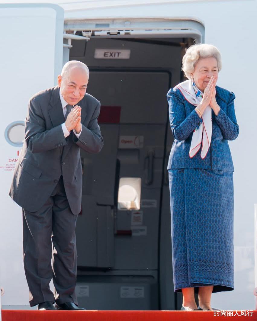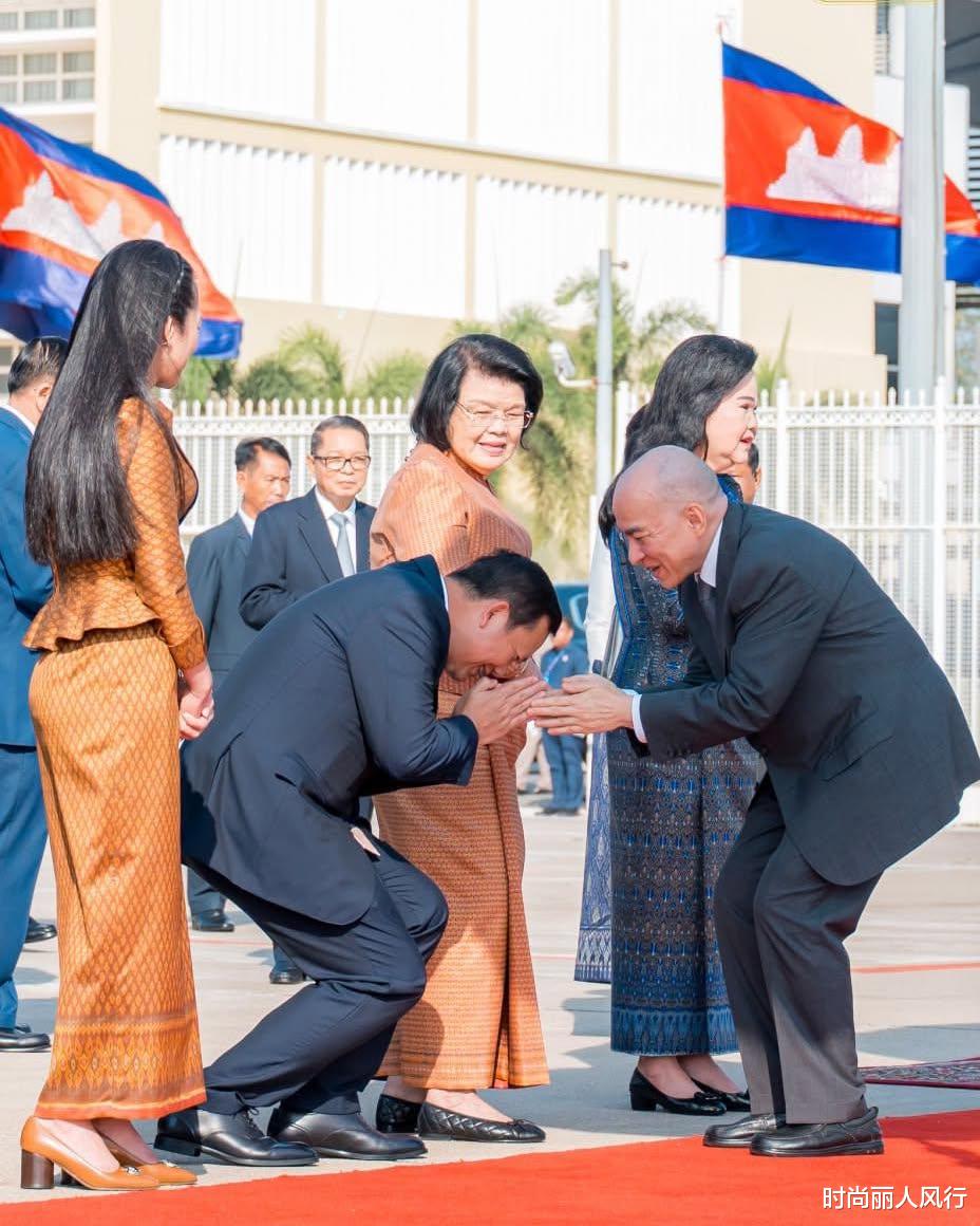 而当时出发的时候,柬埔寨首相和夫人也都亲自到机场送太后和国王,仪式感拉满啊!