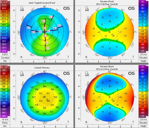 近日,大学生小李怀着参军报国的志向来到我院咨询近视矫正手术。经过全面系统的眼科检查,结果显示:小李右眼近视800度合并150度散光,左眼近视700度合并150度散光。考虑到患者较高的屈光度数,医生最初建议选择ICL植入手术。但小李同学是因为要当兵,ICL植入手术不符合参军要求。在充分评估患者角膜条件后,我院龙克利主任为小李量身定制了"个性化半飞秒激光联合角膜胶原交联术"的矫正方案,该方案既能有效矫正高度近视和散光,又能通过增强角膜稳定性来满足军检要求。