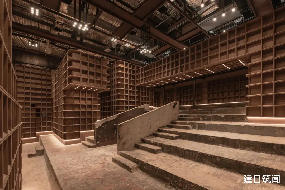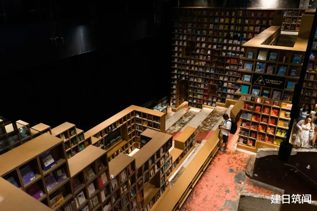 REXKL 将原本 8000 平方英尺的影院大厅,转化为沉浸式数字艺术展览空间——RXP,重新定义了传统影院的观影体验。而影院的 VIP 座位区,则被改造成了社区书店 BookXcess,通过模块化设计和统一材料,创造出迷宫般的阅读空间,让人仿佛在探索城市的隐秘角落。