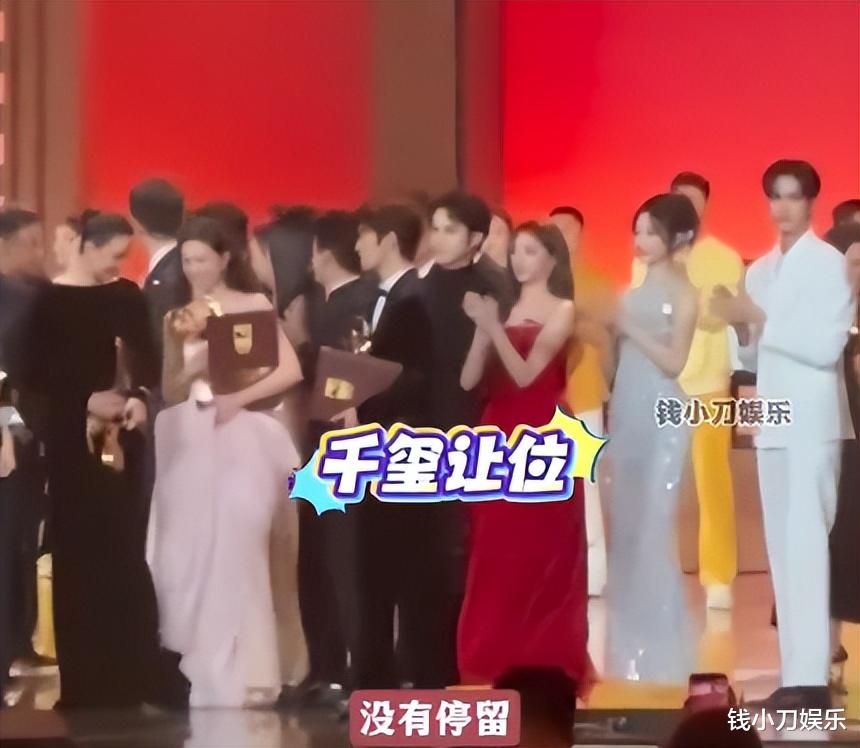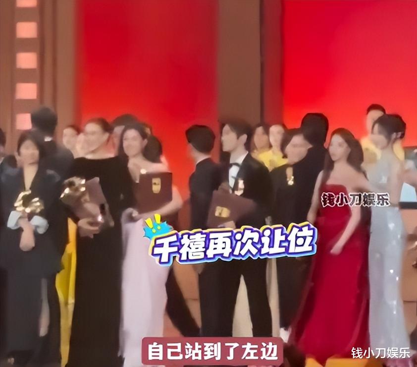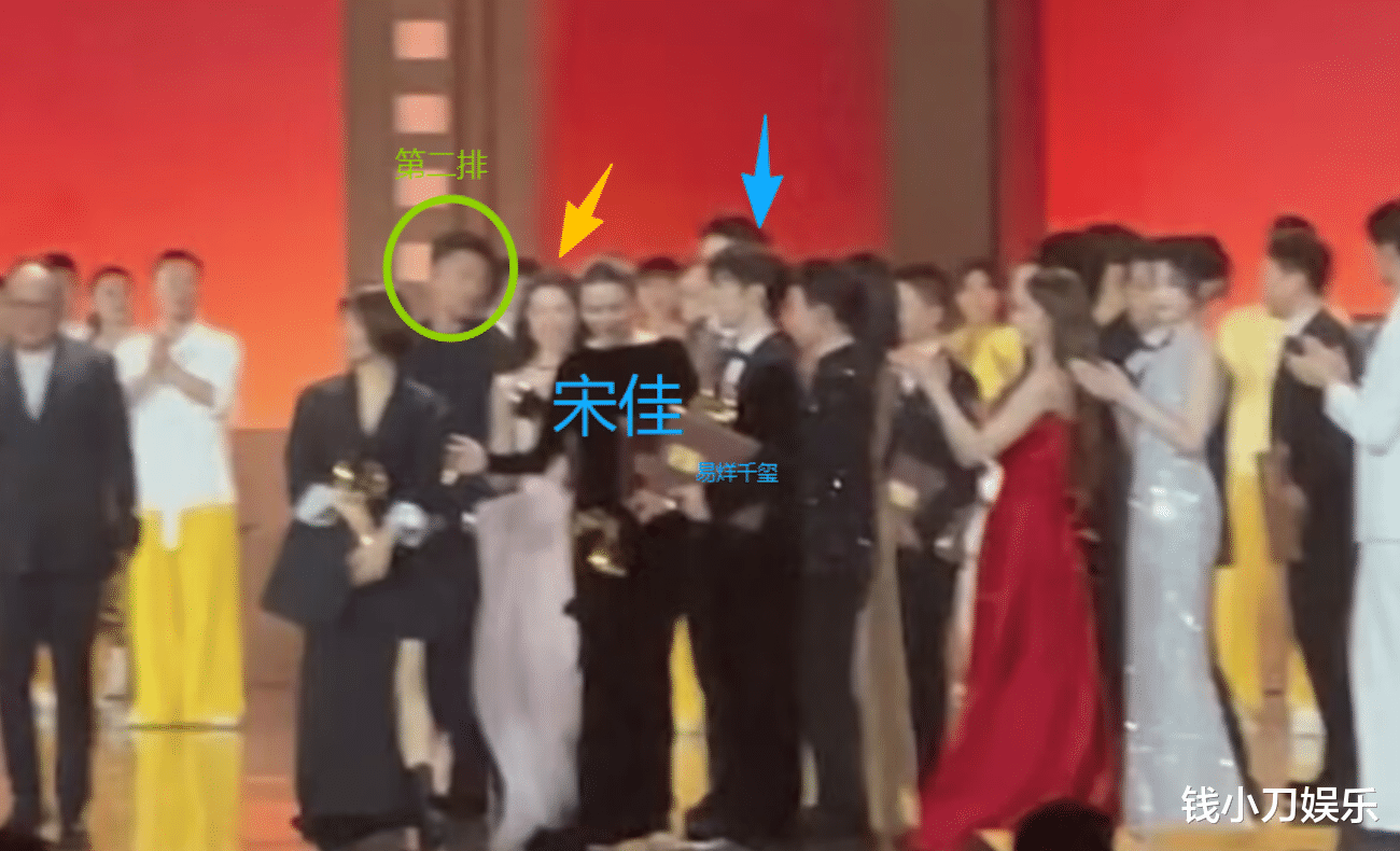 金鸡奖大合影的时候,到场嘉宾纷纷往台上走,易烊千玺站在了宋佳旁边。然而这时钟楚曦过来了,当时宋佳左边是易烊千玺,右边好像是编剧还是导演吧。