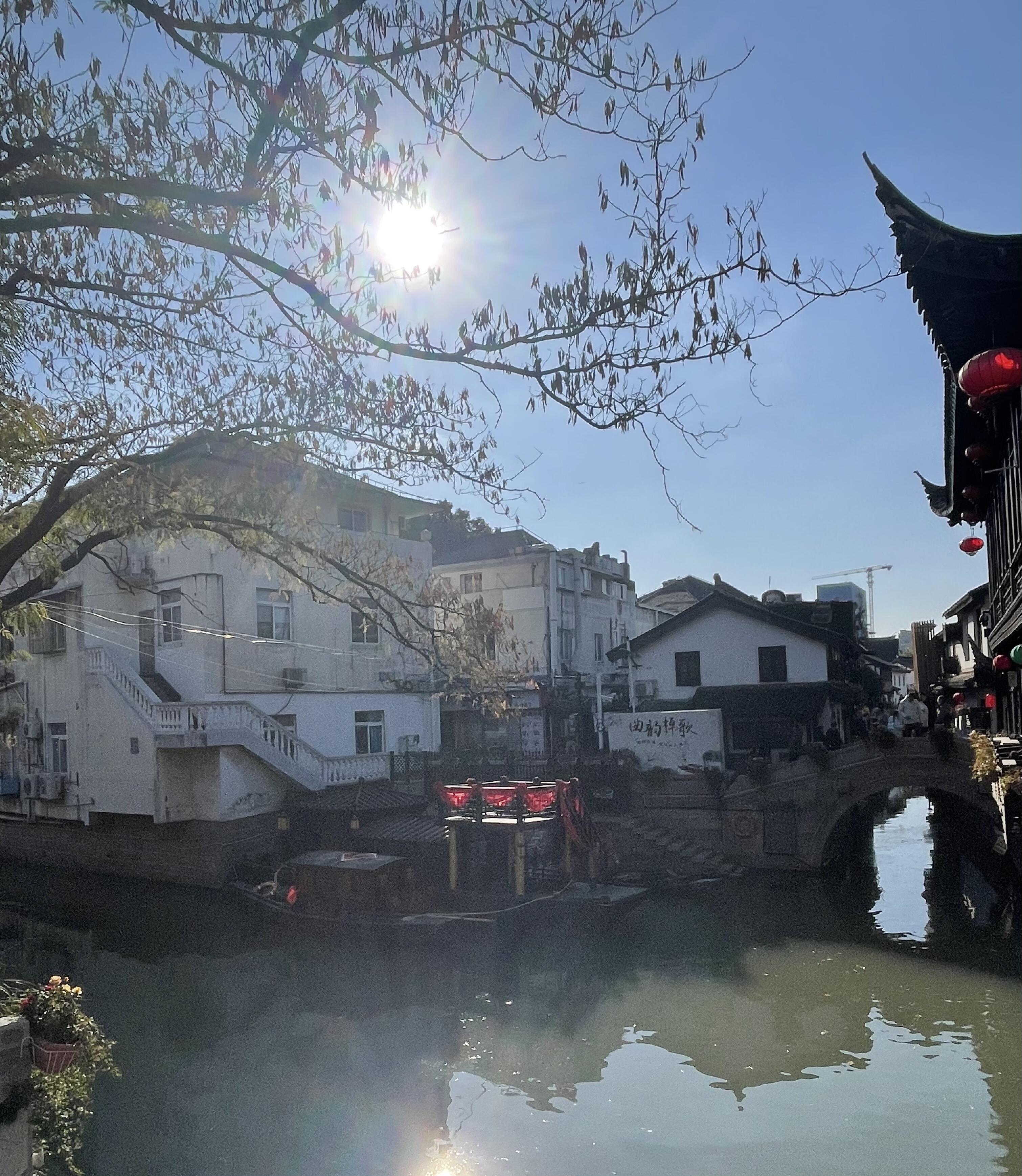 最爱看古色古香的河道上,乌篷船悠悠划过