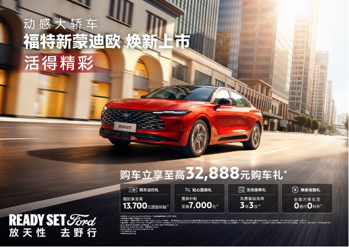 福特新蒙迪欧,承袭福特与生俱来的性能基因,将“放天性,去野行”的品牌精神融入日常出行的每一刻,现以「四大」「精钢」全能实力焕新登场,精准呼应都市精英对驾控、性能与悦己的多元向往。它不止于出行工具,更是一种生活态度的鲜明表达,陪伴用户在都市与远方之间自由穿行,释放真我天性,为精彩生活注入全新动能!