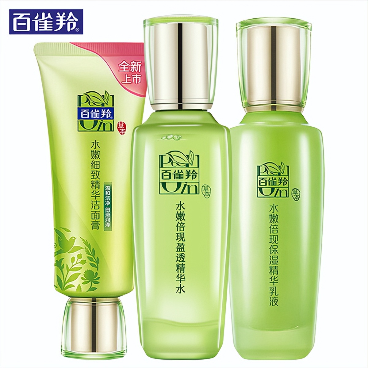 4. 百雀羚水嫩倍现套装效果得分:8它护肤的效果还是不错的,而且价格很实惠,主打补水保湿的功效,有一点提亮肤色,精华水很清爽滋润,可以改善皮肤粗糙等,乳液可以平衡水油,给肌肤充足的水分。