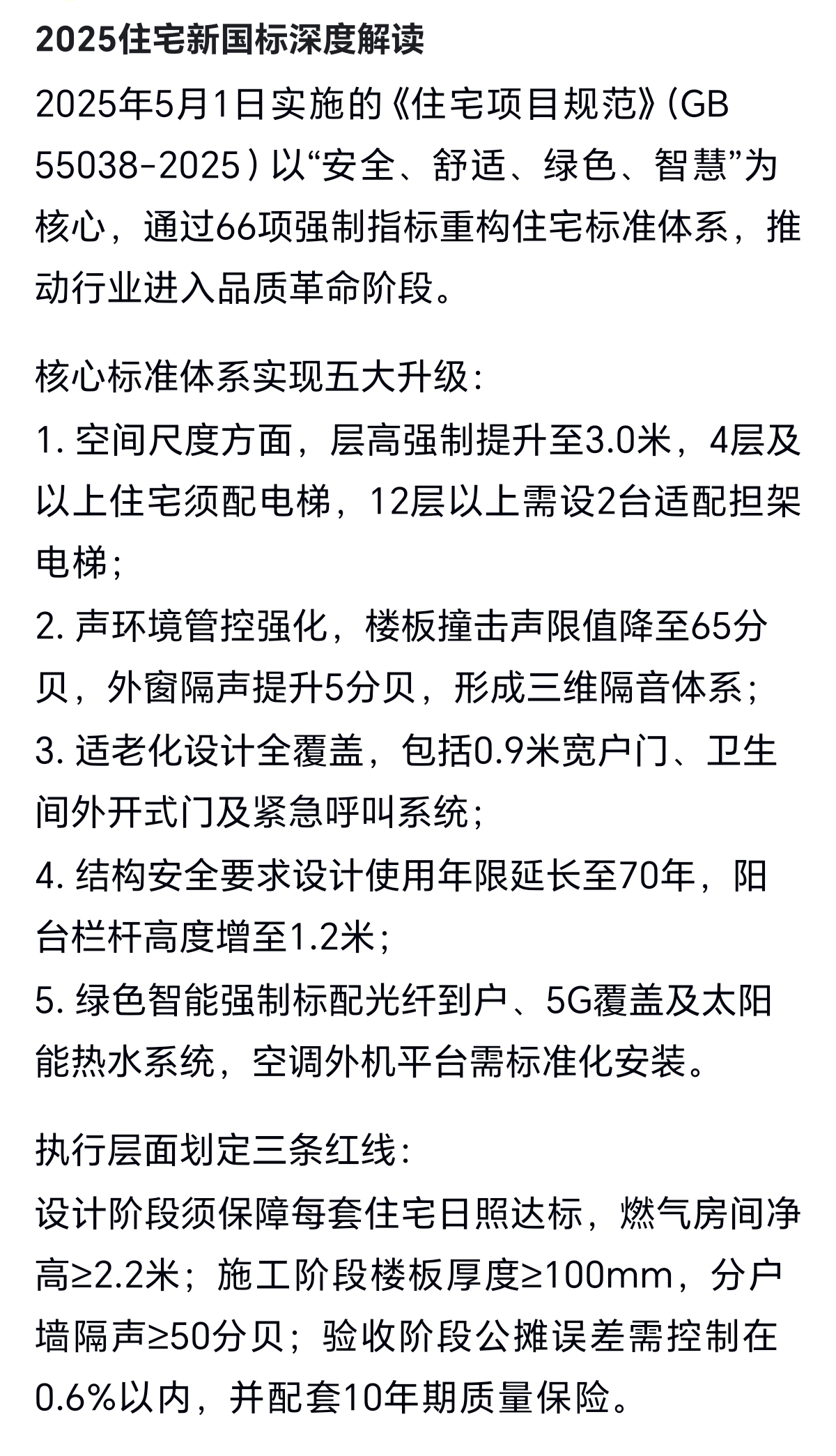 2025年5月1日,《住宅项目规范》(GB55038-2025)正式实施。国家强势性的住房新标准出台。与旧标准相比,其核心要义是:提升居住质量。
