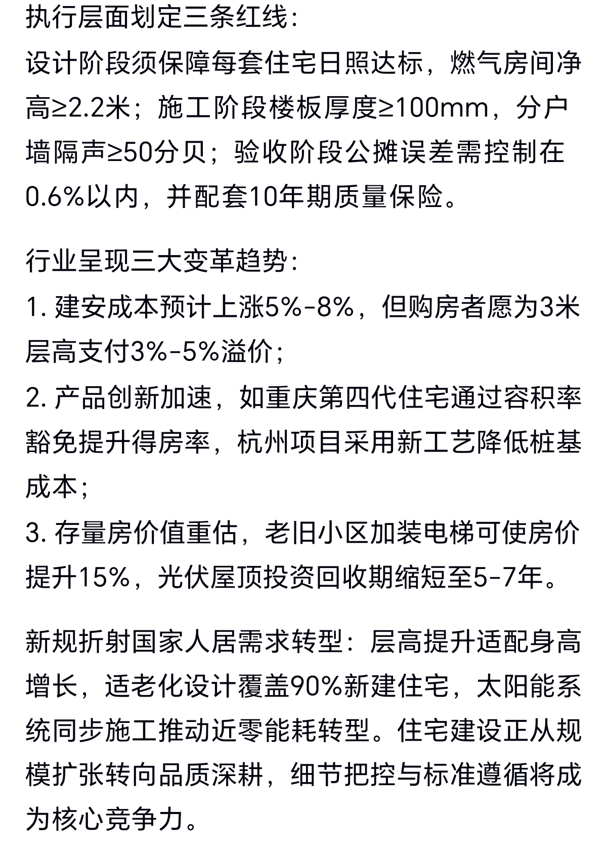 没有刚需,那么住房需求也没有了吗?有的,住房需求绝大多数是改善性需求。新的《住宅项目规范》正迎合这个需求,为提升居住质量而产生。在这个“规范”的指导下,住宅质量相对老标准下住宅必然有非常显著的提升。