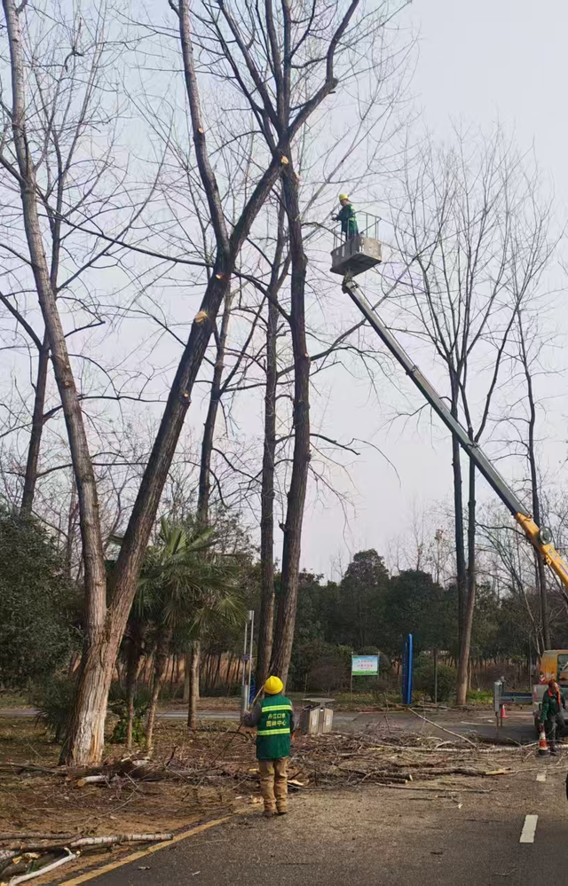 为有效应对冬季雨雪恶劣天气,筑牢湿地公园安全防线,优化生态景观环境,近日,湖北省丹江口市林业局园林绿化服务中心组织专业队伍,对沧浪洲湿地公园开展高空枯枝、断枝专项打理行动,以精细化养护守护游客“头顶安全”。