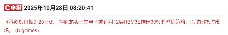 据报道,存储龙头三星电子或针对12层HBM3E推出30%的降价策略,以试图抢占市场。