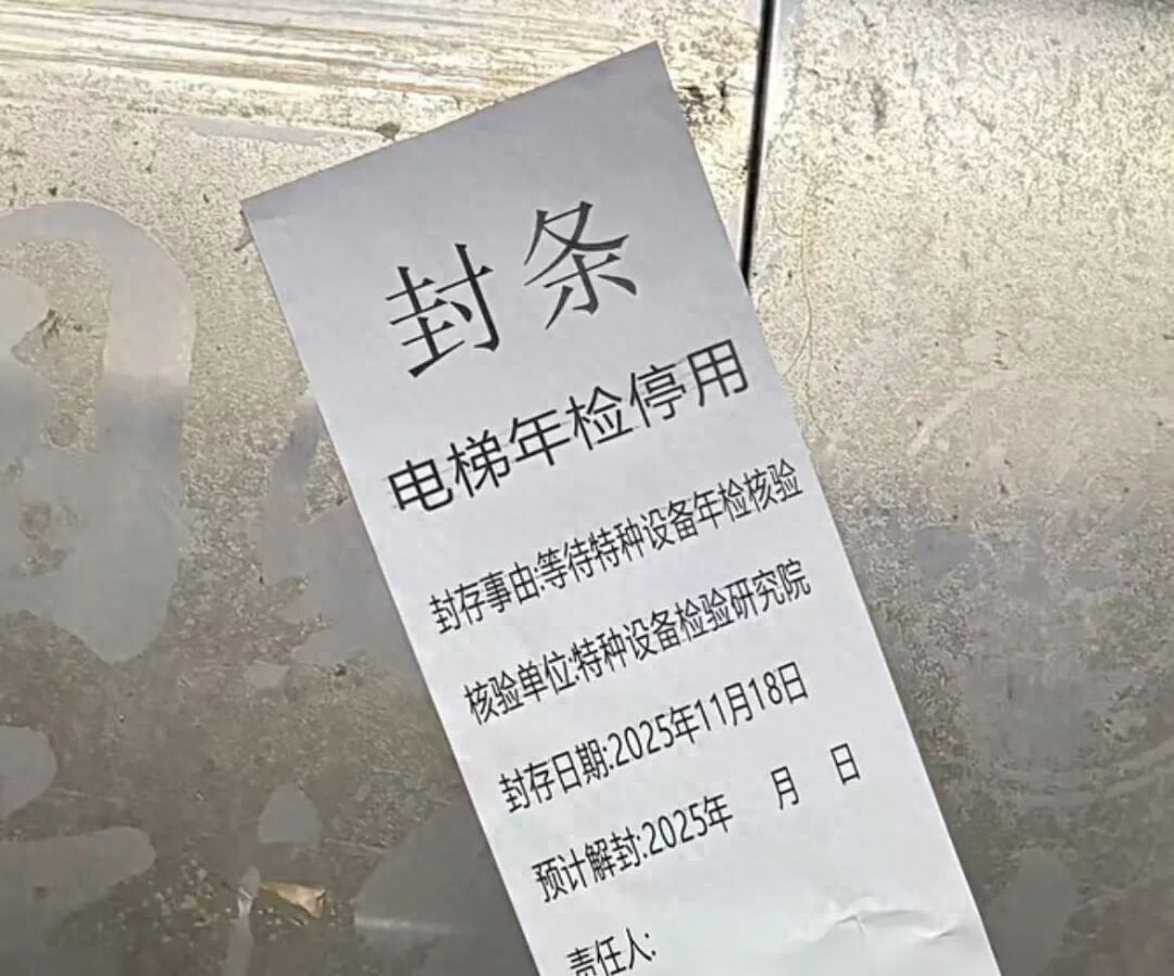 而该物业公司工作人员对此表示,因小区55%的居民欠缴物业费,今年的电梯年检费用交不起,已经逾期使用,当地市场监管部门要求停止电梯使用。
