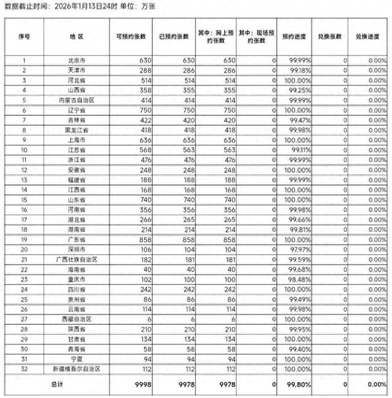 根据最新的央行官方数据显示:2026年马年纪念币、纪念钞的全国预约进度均为100%。