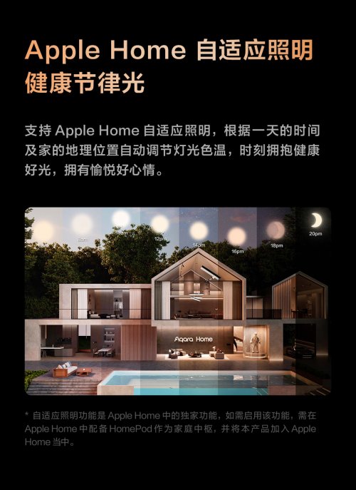 Aqara LED 灯泡 T2 支持 Apple Home 独有的自适应照明功能。该功能可根据一天中的时间变化与家庭所在位置,自动调节灯光色温:晨起时带来暖柔光,到午后逐渐变换至明朗光,夜晚又切换成温润暖光,让居家光线随昼夜节律自然流转,更贴合人体作息节奏。只需将 Aqara LED 灯泡 T2 加入 Apple Home,并配备 HomePod 作为家庭中枢,即可让灯光在一天之中自动变化,带来健康舒适的体验。