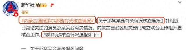 新华社-2025-06-21——《#内蒙古通报那尔那茜有关核查情况#【关于那某某茜有关情况核查通报】 》