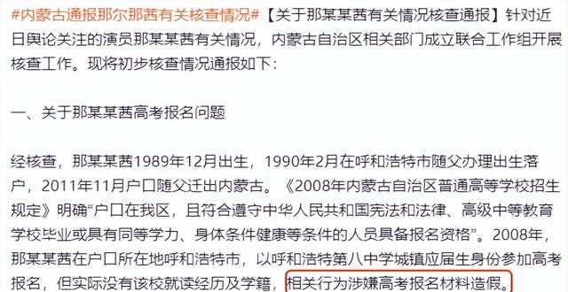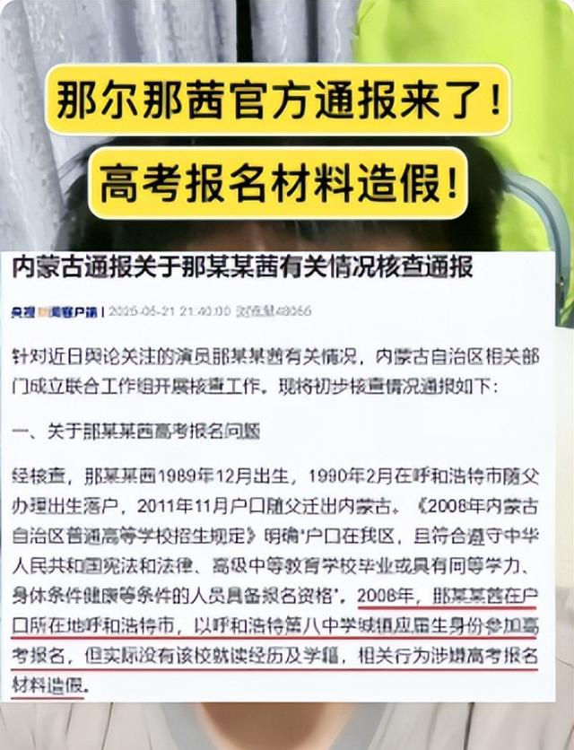 央广网-2025-06-22——《涉嫌报名材料造假!内蒙古教育厅通报演员那尔那茜高考问题》