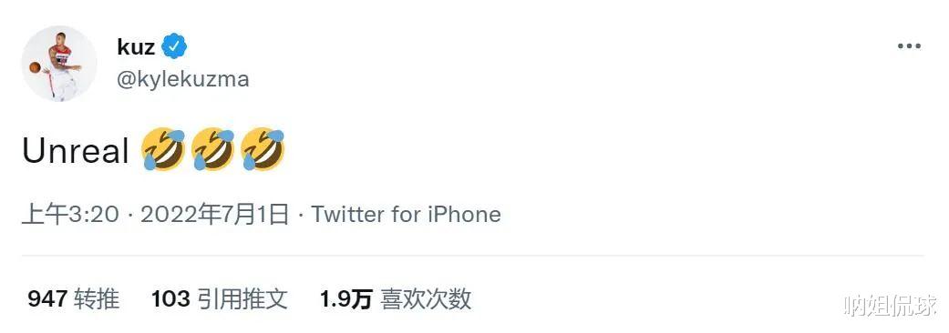 这个新闻轰动了整个NBA,连很多球星都看呆了,谁能想到杜兰特会宣布离队?恩比德写道:LOL(大声笑)!库兹马写道:这不真实(笑哭)。莫兰特则说:Easy Money(杜兰特的绰号,得分机器)。