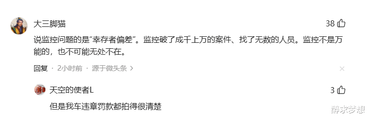说监控问题的是“幸存者偏差”。监控破了成千上万的案件、找了无数的人员。监控不是万能的,也不可能无处不在。