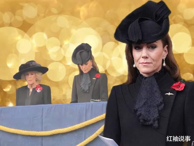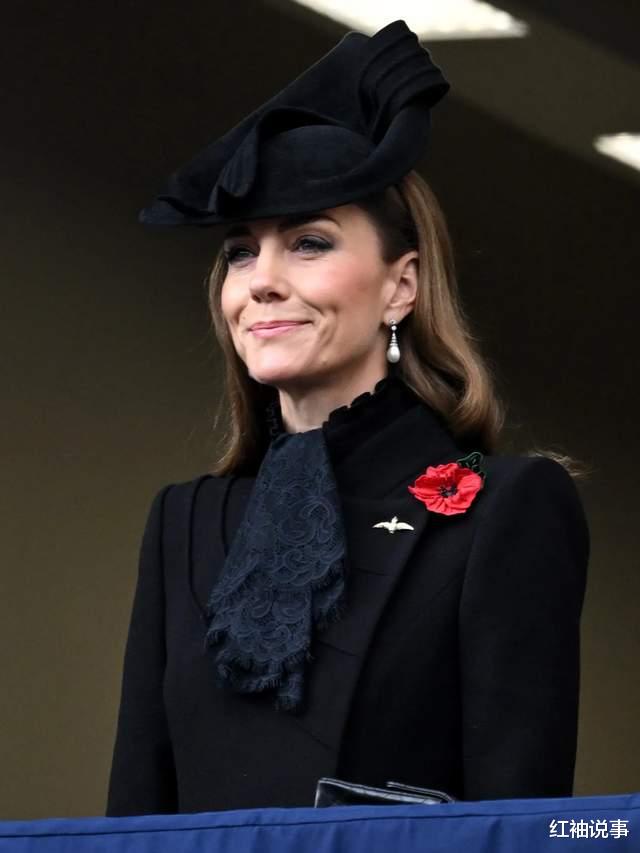 凯特一袭黑色大衣绝美!出席阵亡日纪念活动,颜值碾压卡米拉王后