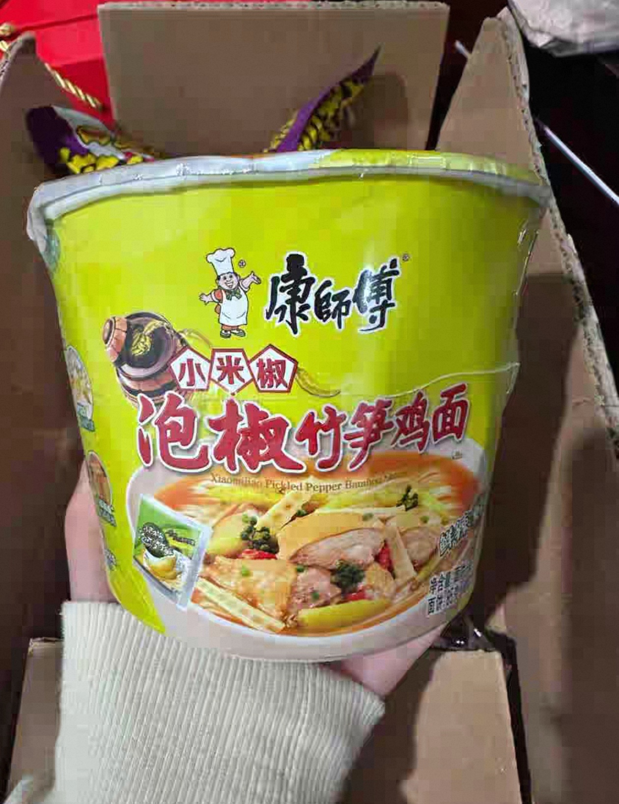 泡椒竹笋鸡面是康师傅系列中酸辣风味的又一代表。包装以黄绿色为主,暗示其清爽而刺激的口感。这款面的特色在于泡椒与酸笋的结合,创造出独特的酸辣风味。