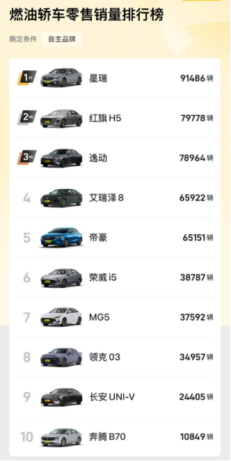2025半年度燃油车销量战报显示,吉利星瑞以91486辆的成绩稳居中国品牌全级别燃油轿车销量冠军,星越L也稳居全品牌全级别燃油车销量冠军,卖出14.62万辆。而在6月单月,星瑞更以11988辆的销量,持续领跑10万级家轿市场,上市至今总销量达65w+辆。是什么让超65万家庭选择它?当我们将目光投向这款起售价仅9.27万元的车型时,答案逐渐清晰。