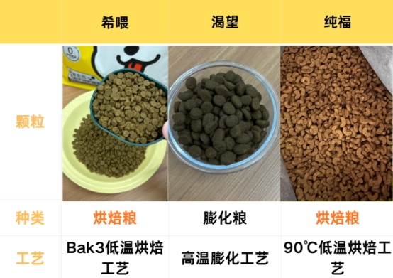 纯福:90℃低温烘焙,是烘焙粮,0肉粉添加,0油脂喷涂,颗粒是比较酥爽不油腻的,同时也能更好地保留营养和风味。