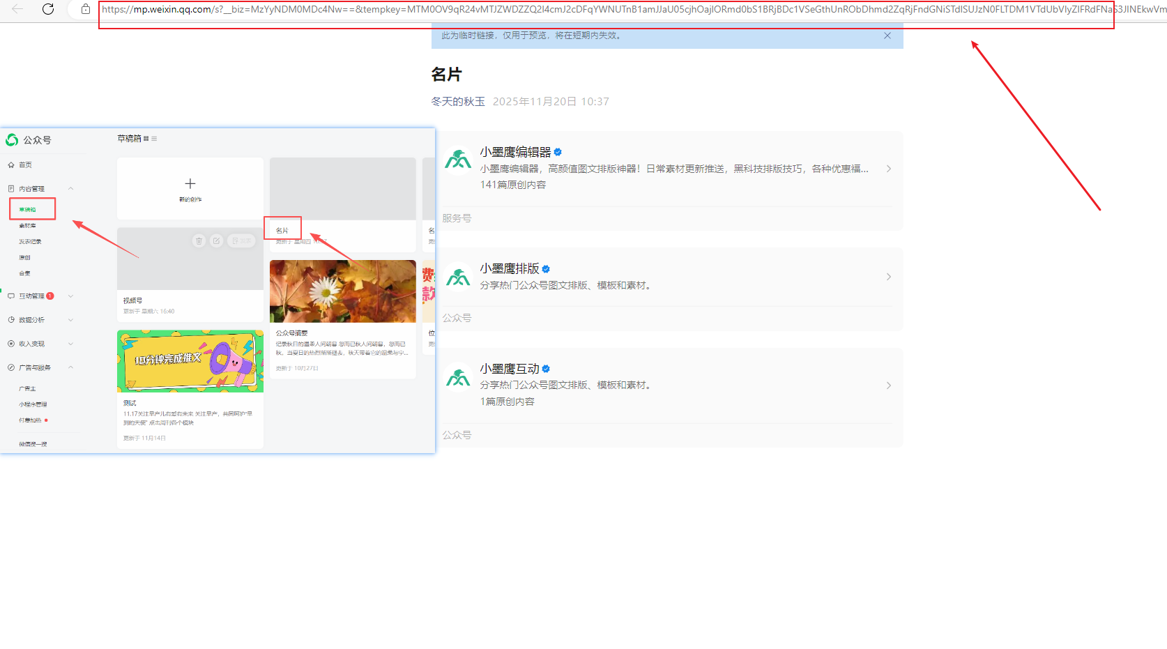 我照做了,把那个真正的临时链接粘贴过来,编辑器果然自动把文章里的名片都抓取出来了!看着最终效果,我长舒一口气,总算没搞砸。记录下来,希望下次还记得这个流程,也希望能帮到和我一样的新手。