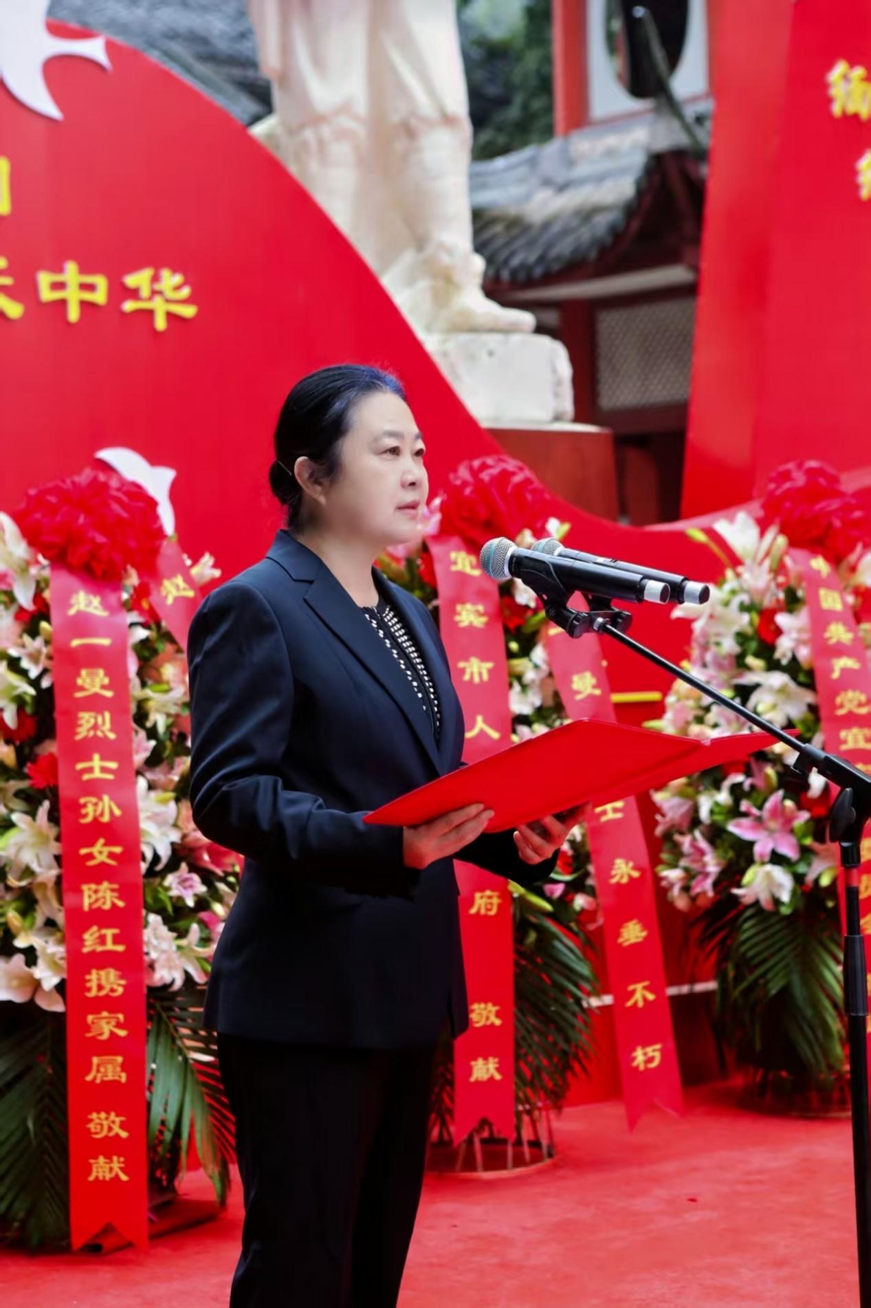 陈红在致辞中深情回顾了奶奶赵一曼的革命生涯。她提到,赵一曼出生于宜宾市翠屏区白花镇,1926年加入中国共产党,九一八事变后受党组织派遣奔赴东北抗日前线。在哈尔滨以东的珠河两岸,她“红装白马”,驰骋杀敌,威震敌胆。1935年因伤被俘后,她面对酷刑坚贞不屈,并以人格力量感化了看护人员。1936年8月2日,赵一曼在珠河英勇就义,年仅31岁。她在遗书中写道:“母亲不用千言万语来教育你,就用实行来教育你。”这句话,成为她对儿子宁儿最后的嘱托,也是对后人的永恒激励。