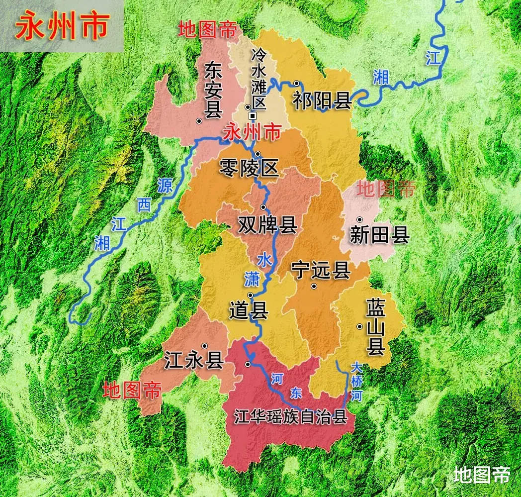 永州位于湖南南部,西接广西桂林、贺州,南连广东清远,地处湘江上游,在地处中国地势第二级阶梯向第三级阶梯的过渡带上,面积2.24万平方千米。