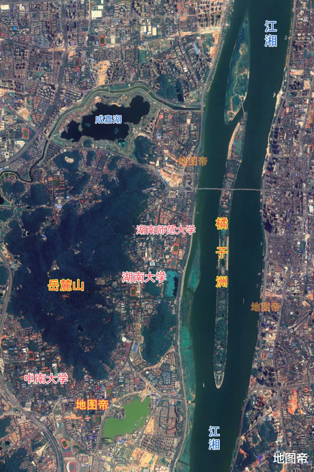 湘江自南向北穿过长沙市区,城区海拔33-63米,市中心纬度是北纬28°13′41″。岳麓山海拔300.08米,伫立于湘江西岸,橘子洲长5千米,卧于江心,构成 “山水洲城”的地貌特色。