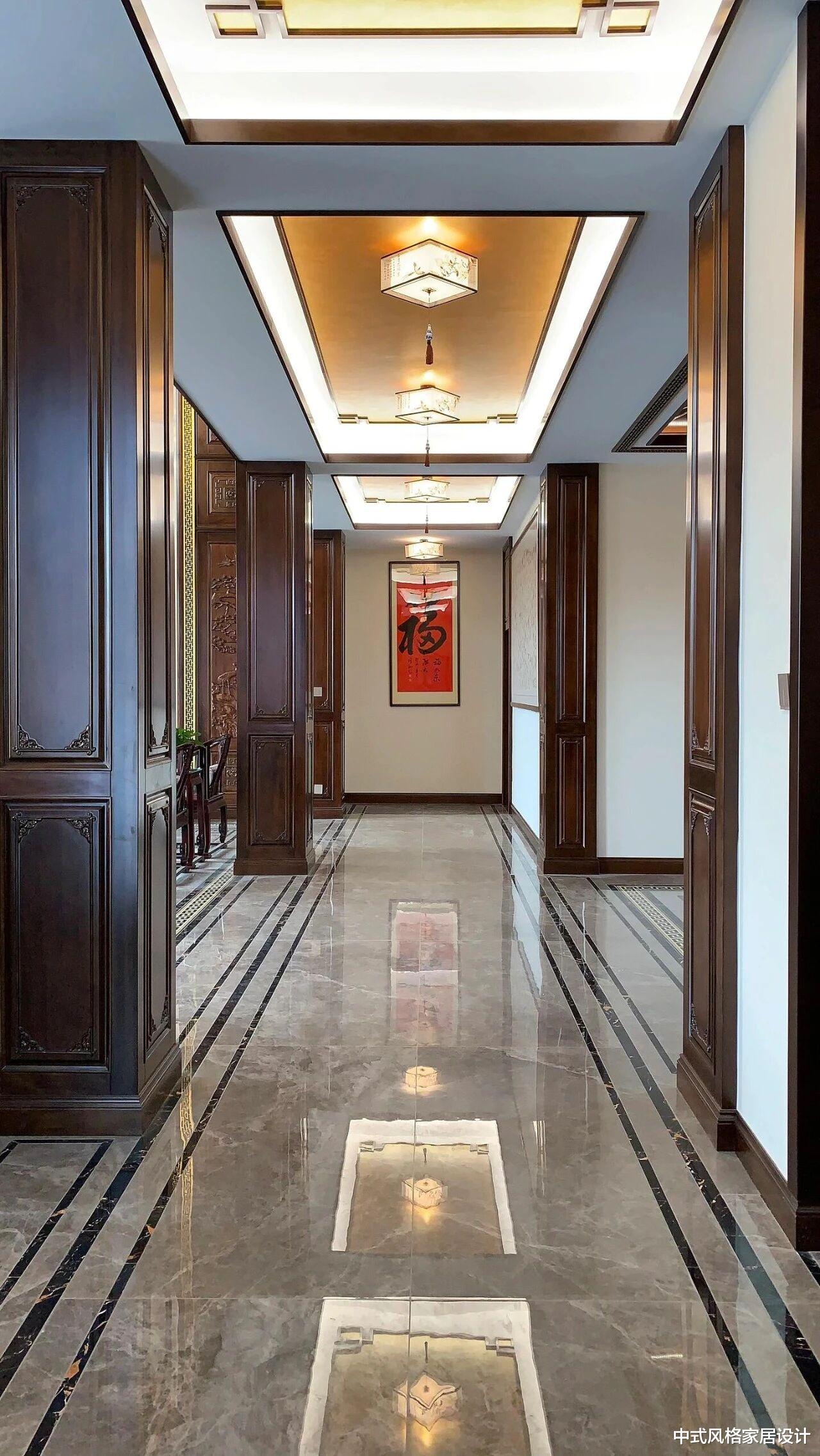 设计初衷:在传统与现代之间寻平衡“业主不愿空间过于暗沉”,这句简单的要求成为设计的重要起点。传统中式风格常以深色木作、厚重家具为特色,容易造成空间压抑。为此,我们选择了亮面瓷砖作为解决方案——它们既能反射光线,提升空间明亮度,又在材质上与中式元素的温润形成巧妙对比。