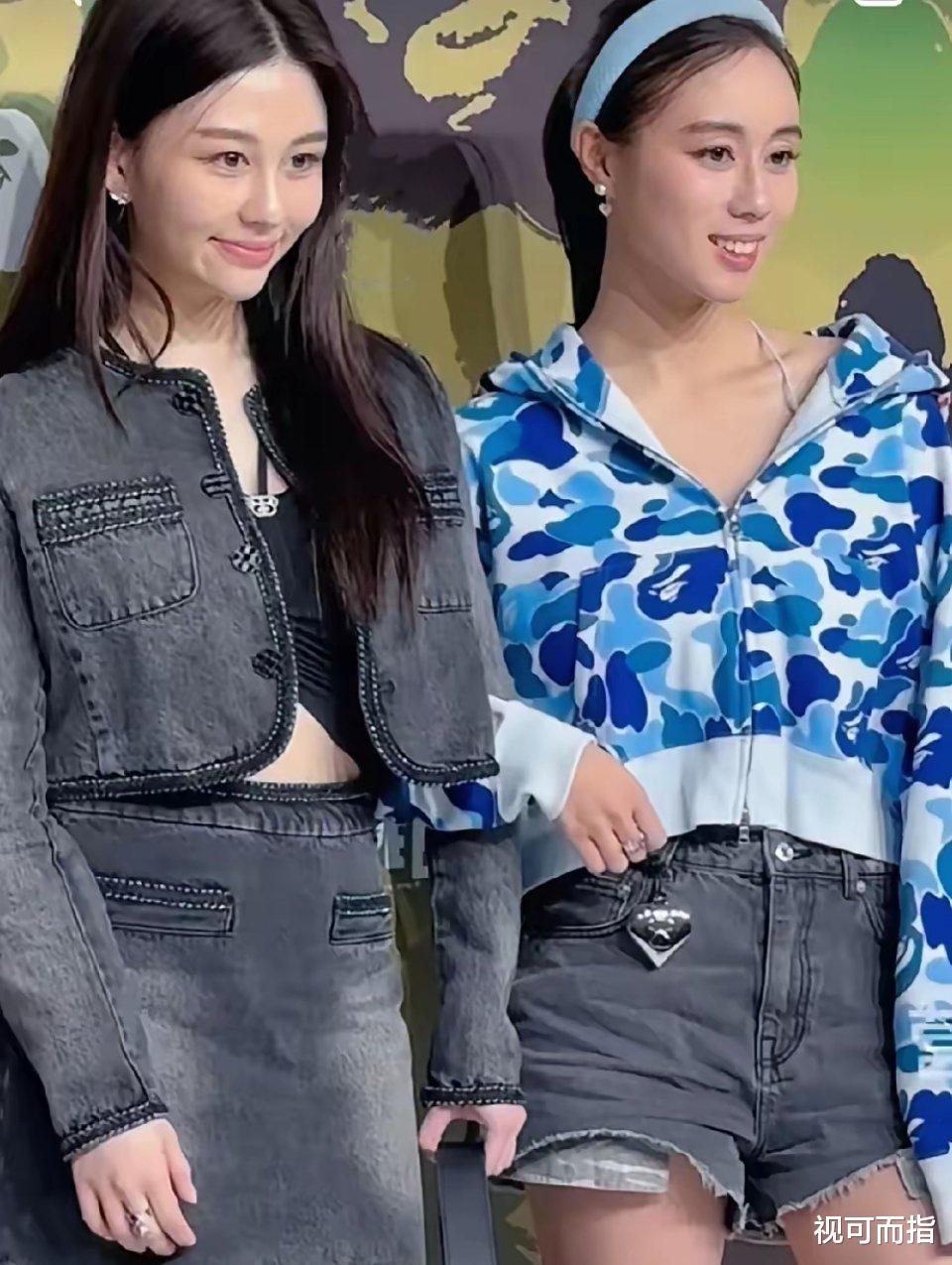 与母亲并肩而立的沈月,仿佛是青春的使者,她选择了一套牛仔短裙套装,尽显青春活力与甜酷气息,完美契合了时下年轻人的审美趋势。