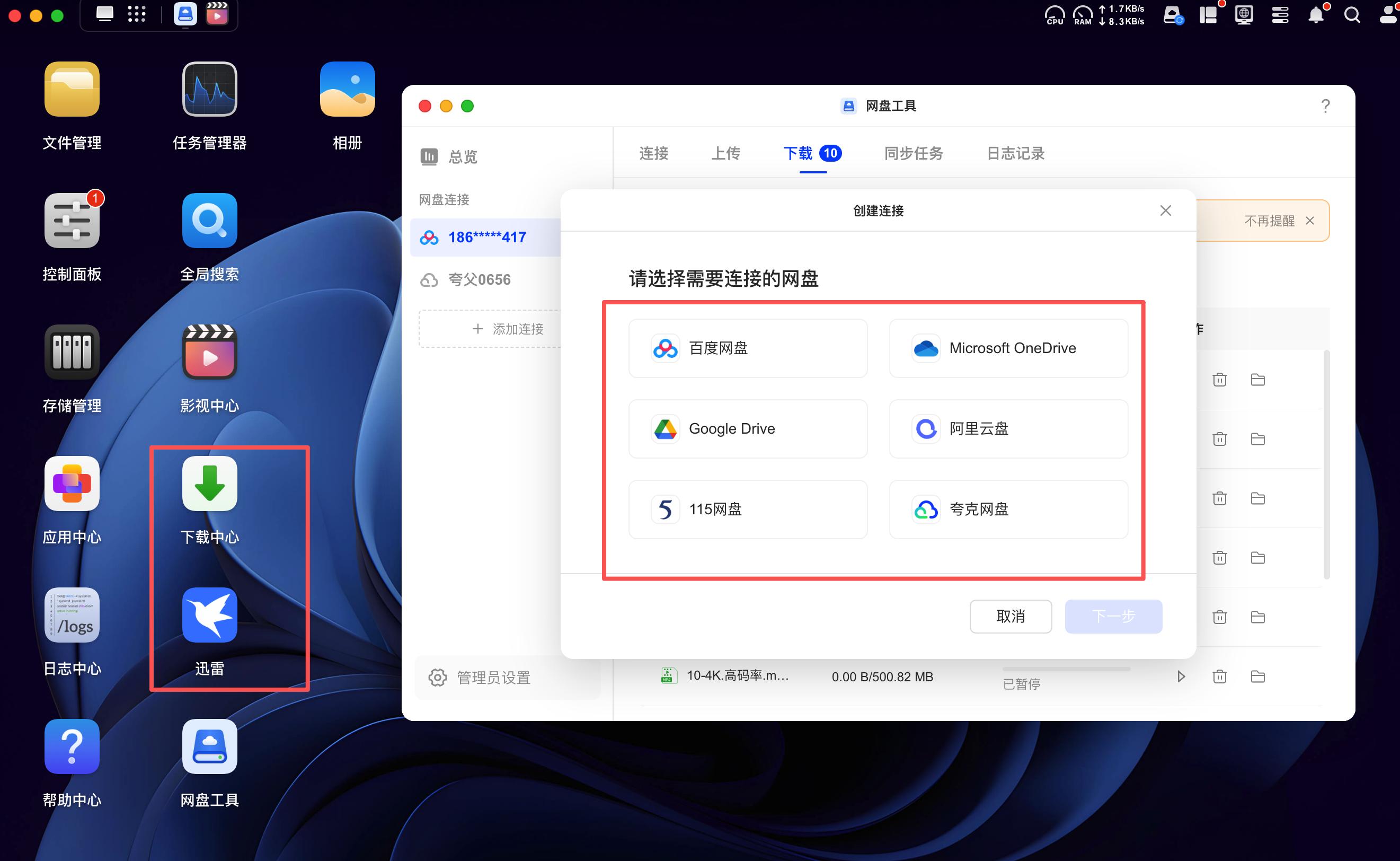 ▲也可以使用绿联NAS里的资源网站上的影视资源直接下载到NAS里,比如我们常用的百度网盘、夸克网盘等,都可以直接再NAS里找到登陆,直接使用。省去中间下载至PC端再拷贝至NAS里的繁琐环节。