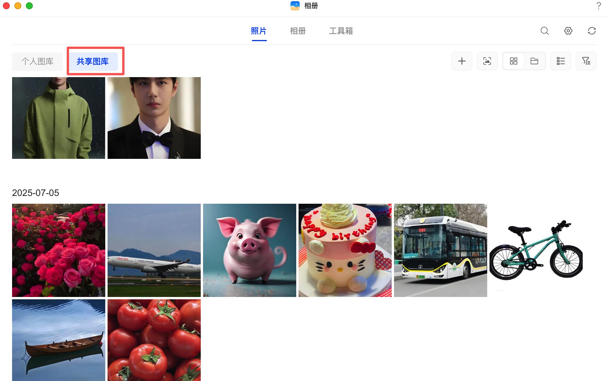▲相册还有图片共享图库功能,可以将想要分享的图片上传至共享图库,成员之间均可以查看。同时还具有分享功能,生成分享链接,直接发送。点击链接即可查看分享图片。