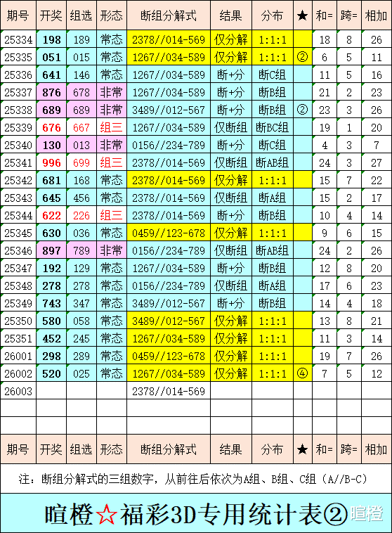 26003期:暄橙福彩3D综合条件