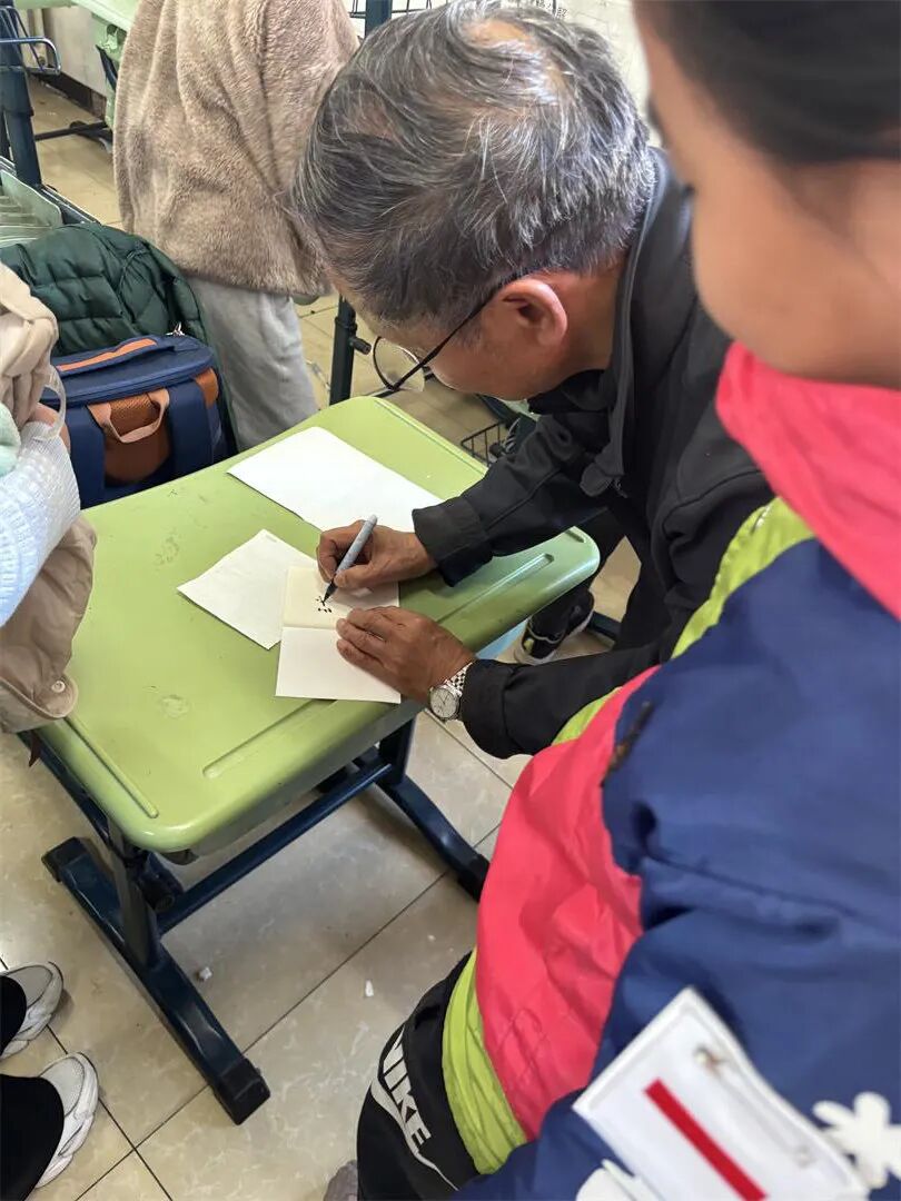 课程接近尾声,孩子们早已被契丹爷爷深厚的书法功底和儒雅的气质所折服,纷纷拿着笔记本围到爷爷身边,热情地请求签名留念。爷爷耐心地为每个孩子签名,并送上鼓励的话语,现场气氛温馨又热烈。