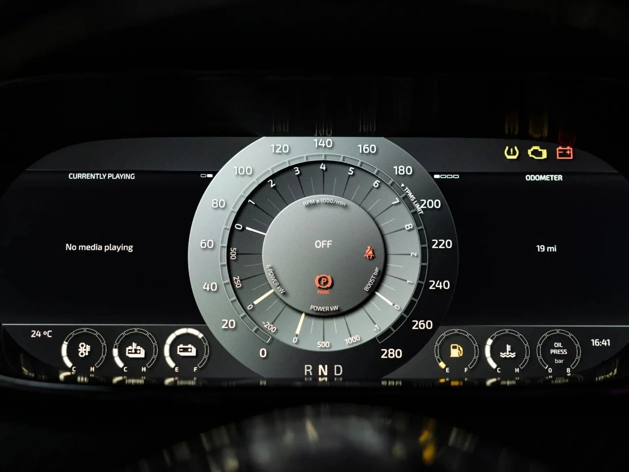 虽然安装了3个电机与电池组,但整体车重与以前的Agera相当。性能表现上,这款车从0加速到100公里/小时的时间仅需2.8秒,最高时速被电子限速在了400公里/小时。
